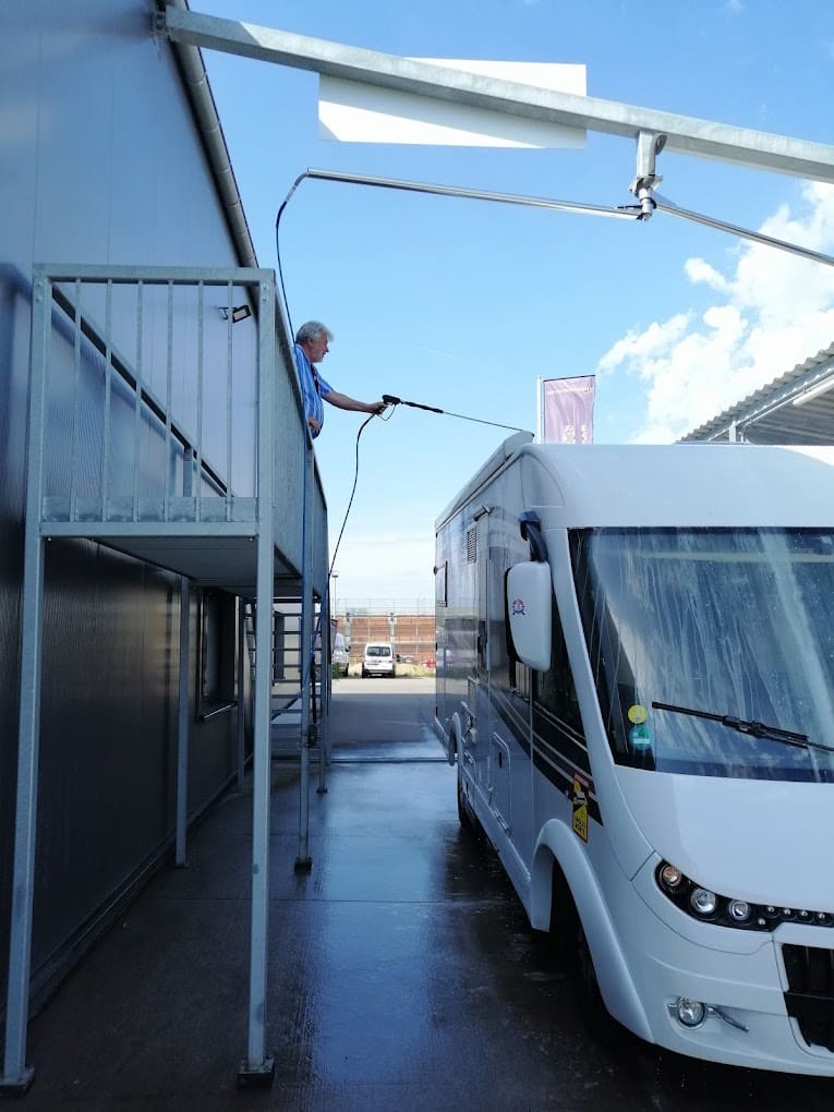 Unsere Fußmattenwaschanlage reinigt Ihre Matten gründlich, und das Podest erleichtert die Dachwäsche.